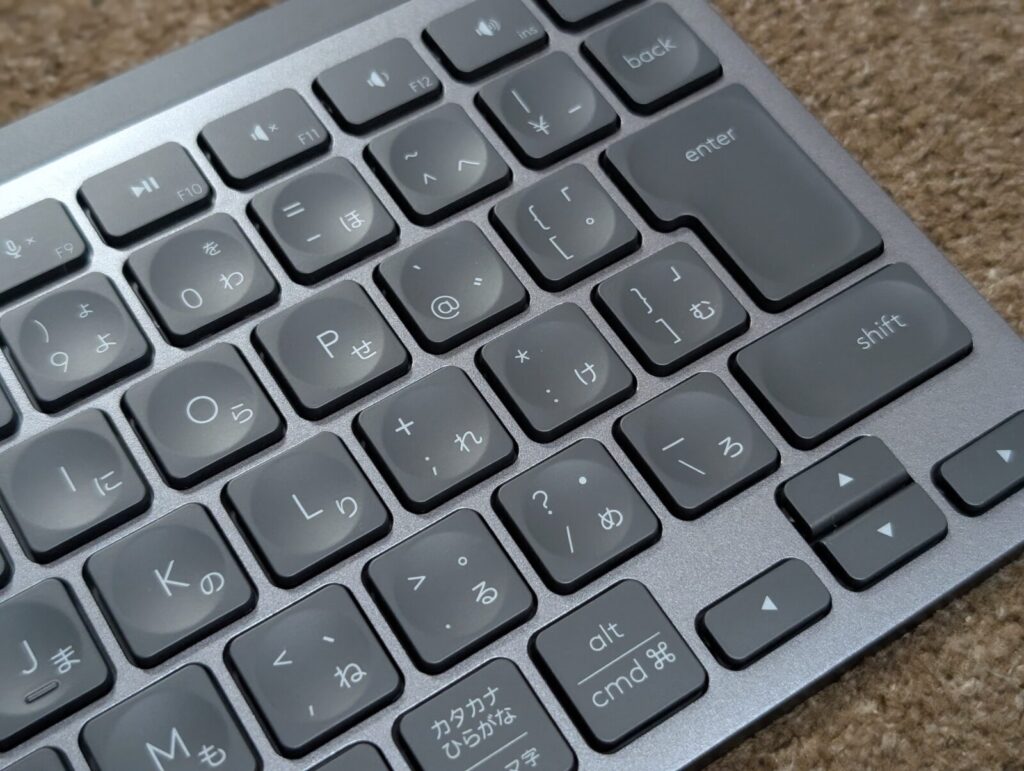 - 極上の打鍵感: HHKBやREALFORCEほどのストロークの深さはありませんが、ノートPCよりは適度な深さがあり、指に吸い付くようにフィットします。この「ペチペチ感」と「しっかり感」のバランスが絶妙で、他では得られない快適さです。