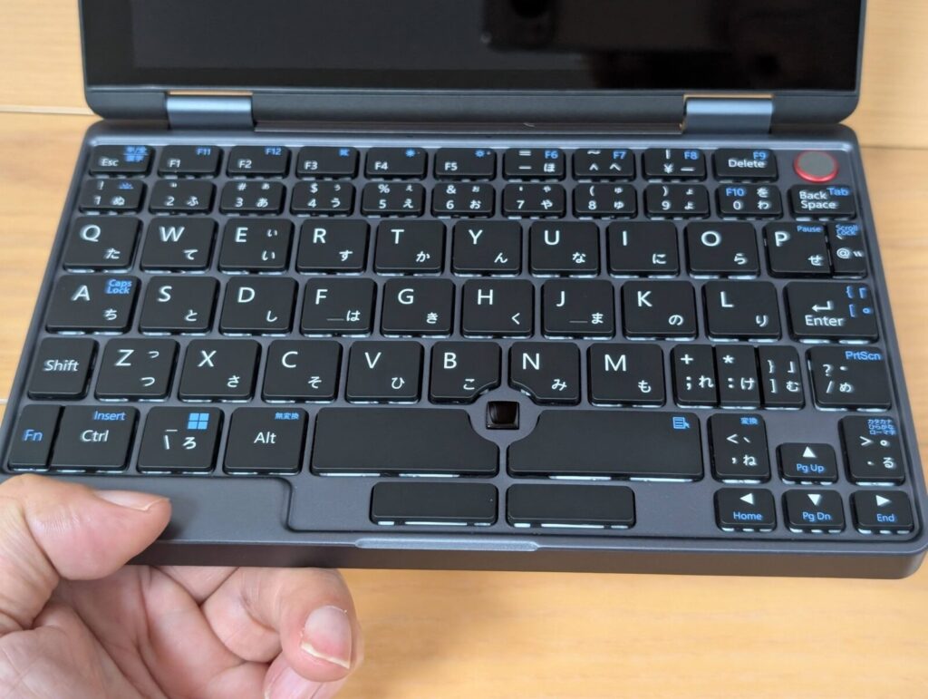 - 日本語配列: この手のUMPCには珍しく日本語配列なのが嬉しいポイント。ただ、配列自体は独特なので「バシバシ打てる」まではいきませんが、慣れれば十分戦えます。