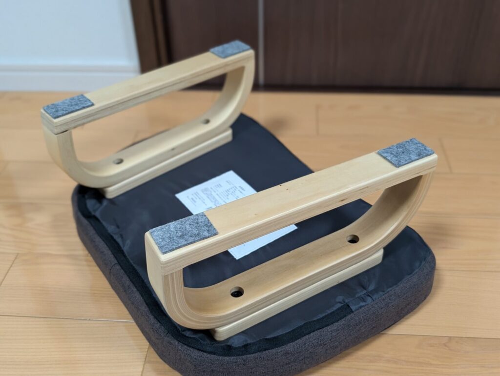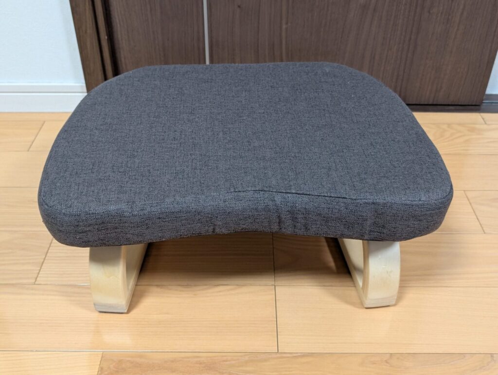 座ってみて一番感動したのは、座面の「角度」です。 座面は水平ではなく、前が低く後ろが高くなるように傾斜がついています。この角度のおかげで、正座をしてお尻を置いたときに、スッと自然な位置に収まるんです。 無理に背筋を伸ばそうとしなくても、この傾斜に身を任せるだけで骨盤が立ち、楽に良い姿勢がキープできます。