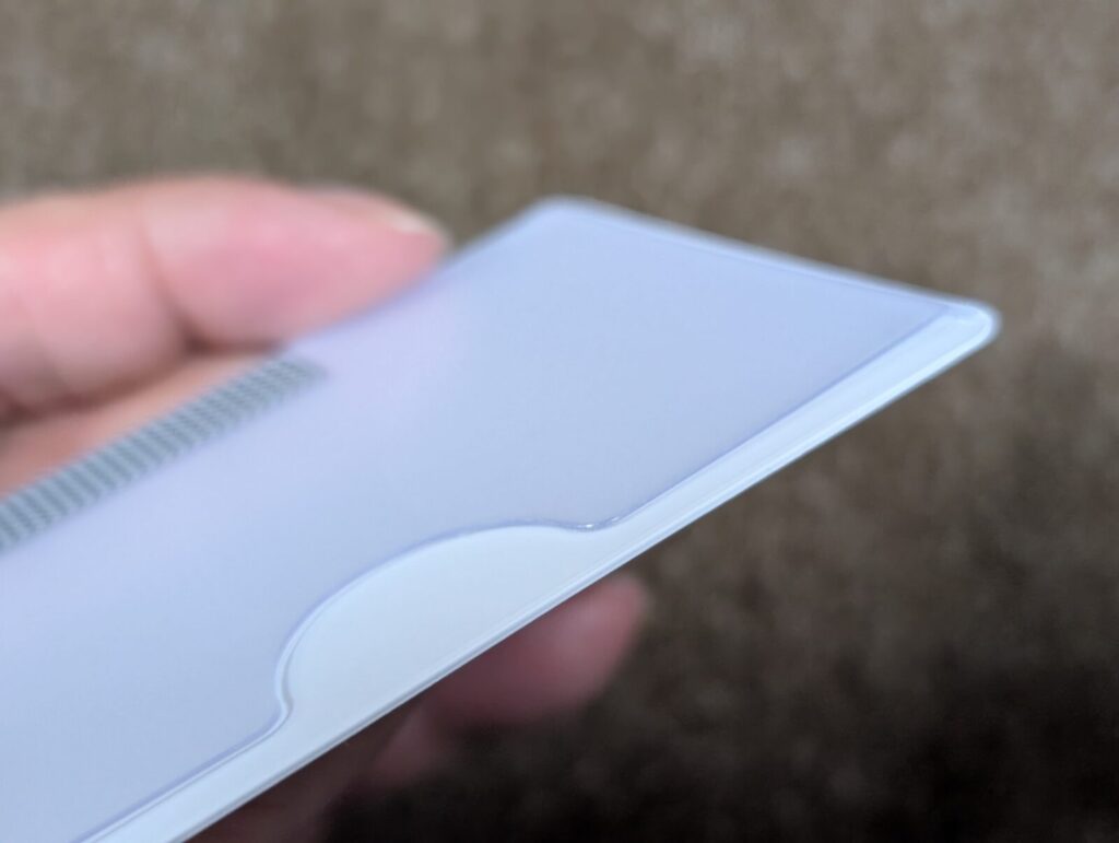 これなら財布の中でお尻の圧力がかかっても、カード自体が曲がることはなさそうです。