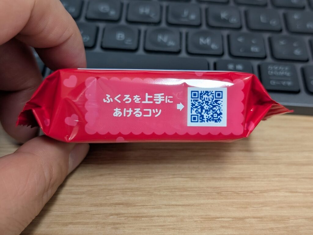 しかし先日、ふとパッケージの側面をよく見てみると、「ふくろを上手にあけるコツ」という文字と共にQRコードが印字されているのを発見しました! 今まで何度も食べてきたのに、こんなガイドがあることすら全く気が付きませんでした…。
