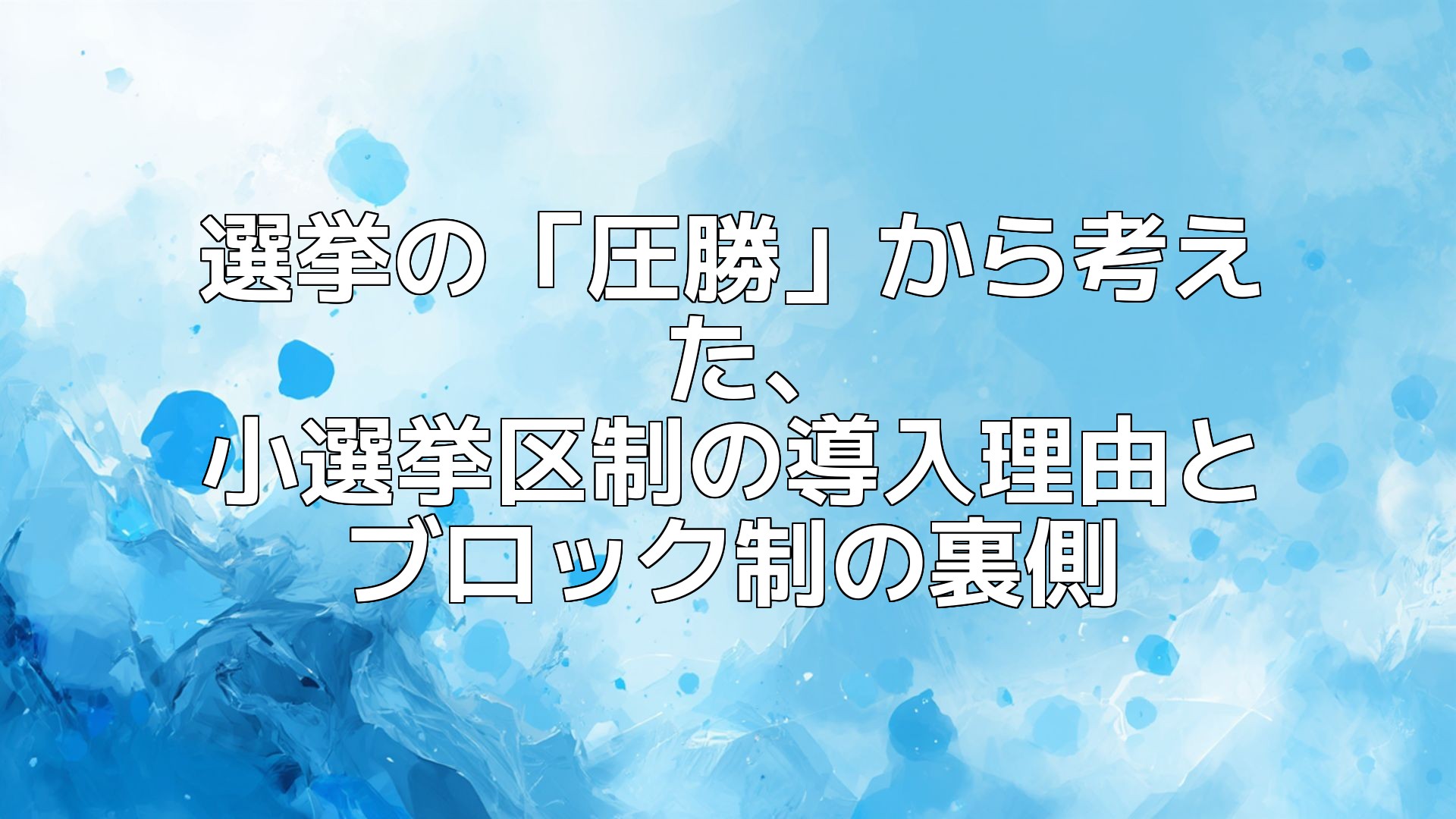 完璧な制度はありませんが、「圧勝」という極端な結果も、実は「安定」のためのコストとして設計されたものだった。 そう理解すると、単なる違和感だけでなく、このシステムが持つ「意図」が少し立体的に見えてきました。