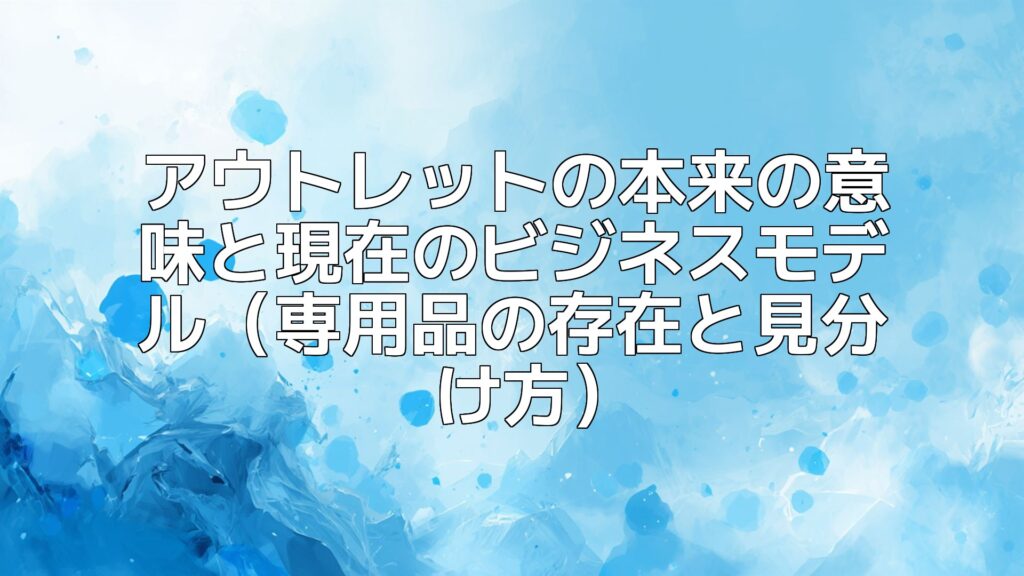 アウトレットモールにおける商品の流通構造と、現在の小売業界における位置づけについて整理します。 1. アウトレットの本来の意味と初期の役割 英語の「Outlet」は「出口」や「はけ口」を意味します。小売・流通業界においては、メーカーやブランドが正規...